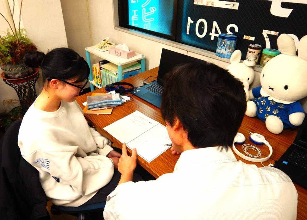 定期的に一人ひとりの生徒とのミーティングを行っています。学習が効率良く行われている事の確認や、目標にする学校の合格に向けた長期的なプランの提案や修正、そしてその為の短期的なスケジュール管理などを話し合います。