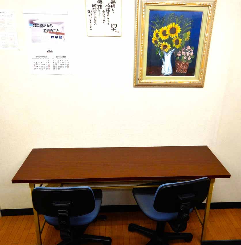 アットホームな雰囲気の自習室を開放しています。自習中解らない所は質問できます。